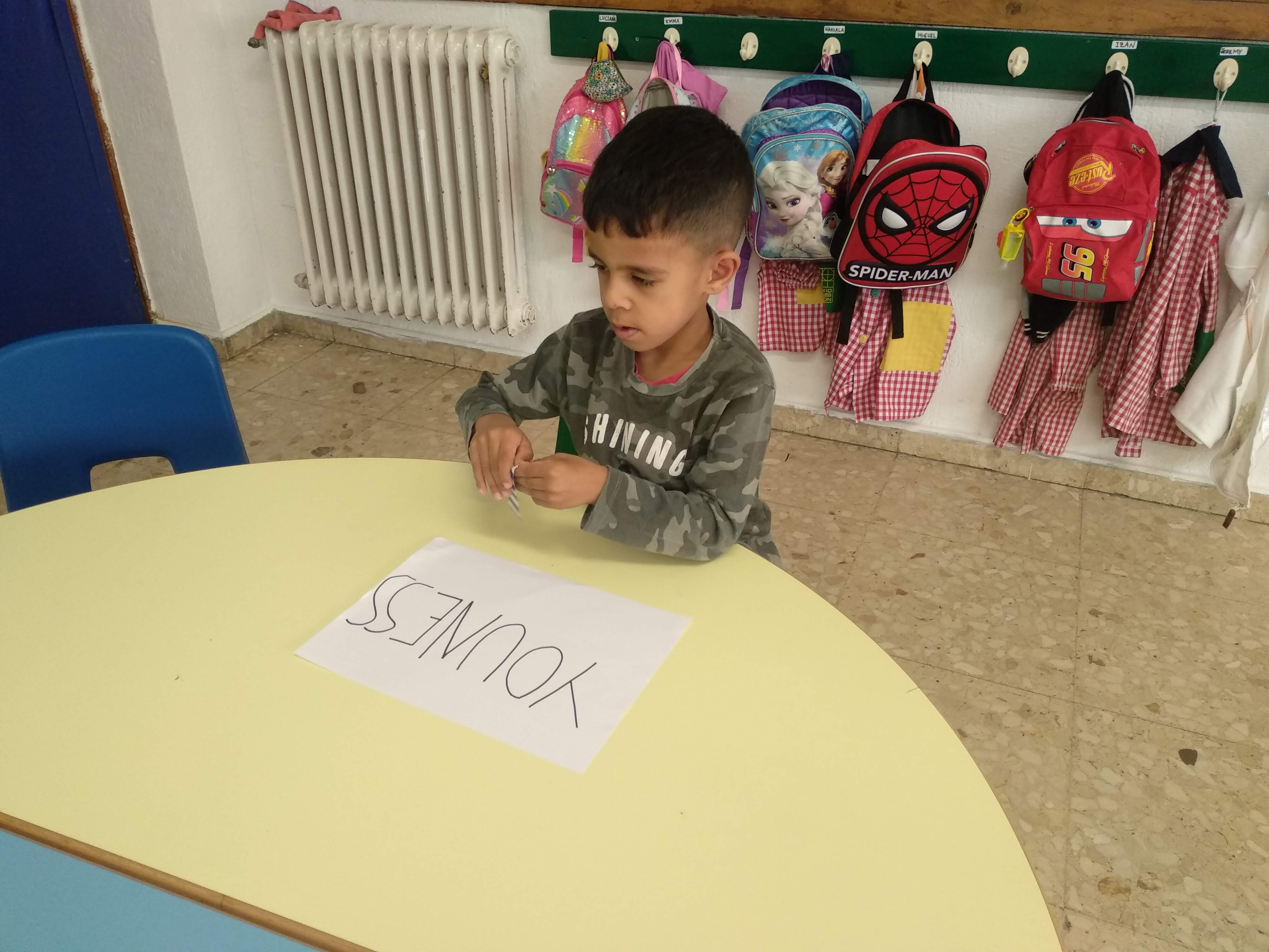 Estivemos xogando cos paus depresores a facer as distintas formas que a profe poñía no encerado.